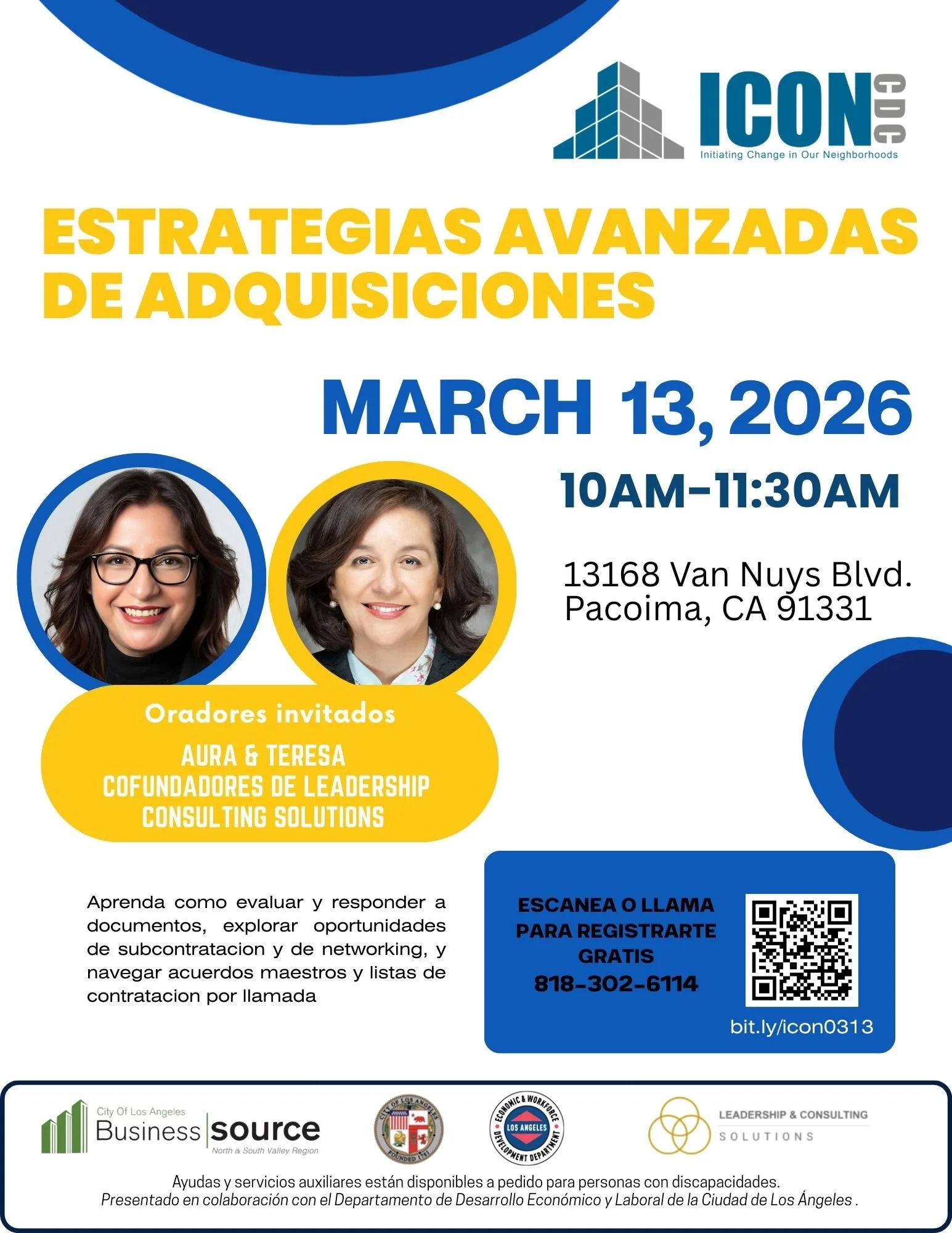 Estrategias Avanzadas de Adquisiciones Friday, March 13, 2026 10:00 AM 11:30 AM Google Calendar ICS Regístrese Ahora