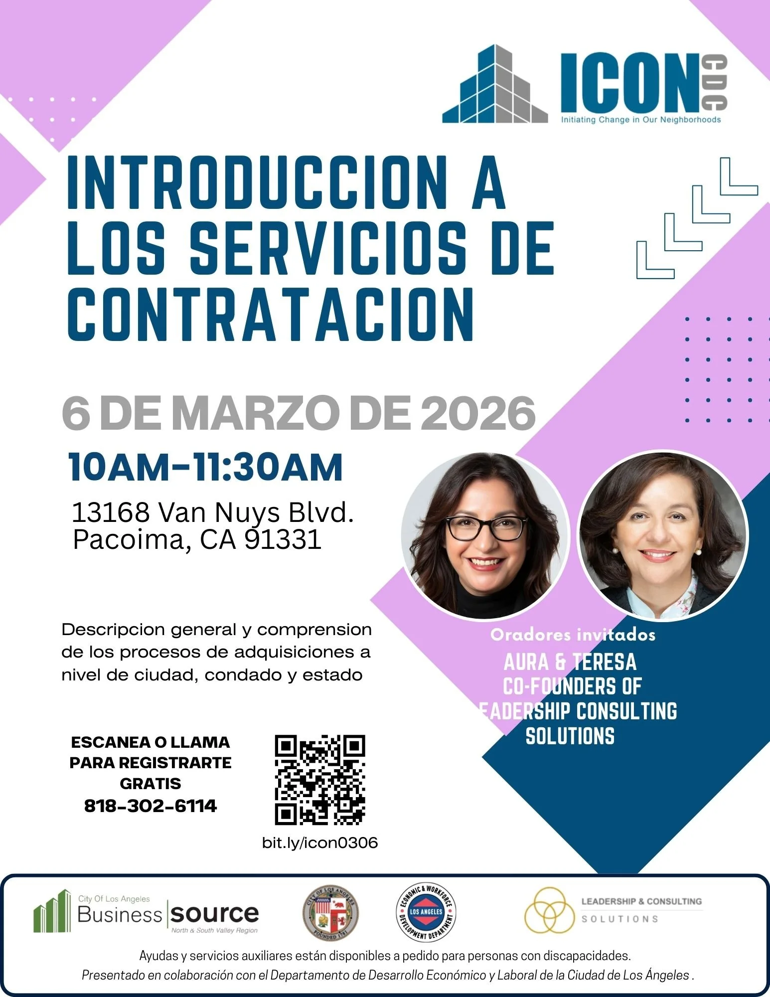 Back to All Events Introduccion a los Servicios de Contratacion Friday, March 6, 2026 10:00 AM 11:30 AM Google Calendar ICS Regístrese Ahora